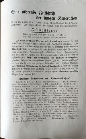 '''Pfingstfeuer''' - | == Pfingstfeuer - Eine führende Zeitschrift der jungen Generation == | ||