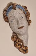 1956 5791 Maske Frau mit Halsansatz, lange Haar mit Haarband, vollglasiert H=20