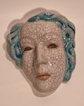 Gertraud Wolterhoff gestaltete ihre Masken eher abstrakt mit wilden Frisuren, häufig mit Halsansatz und Löchern anstelle von Augen.