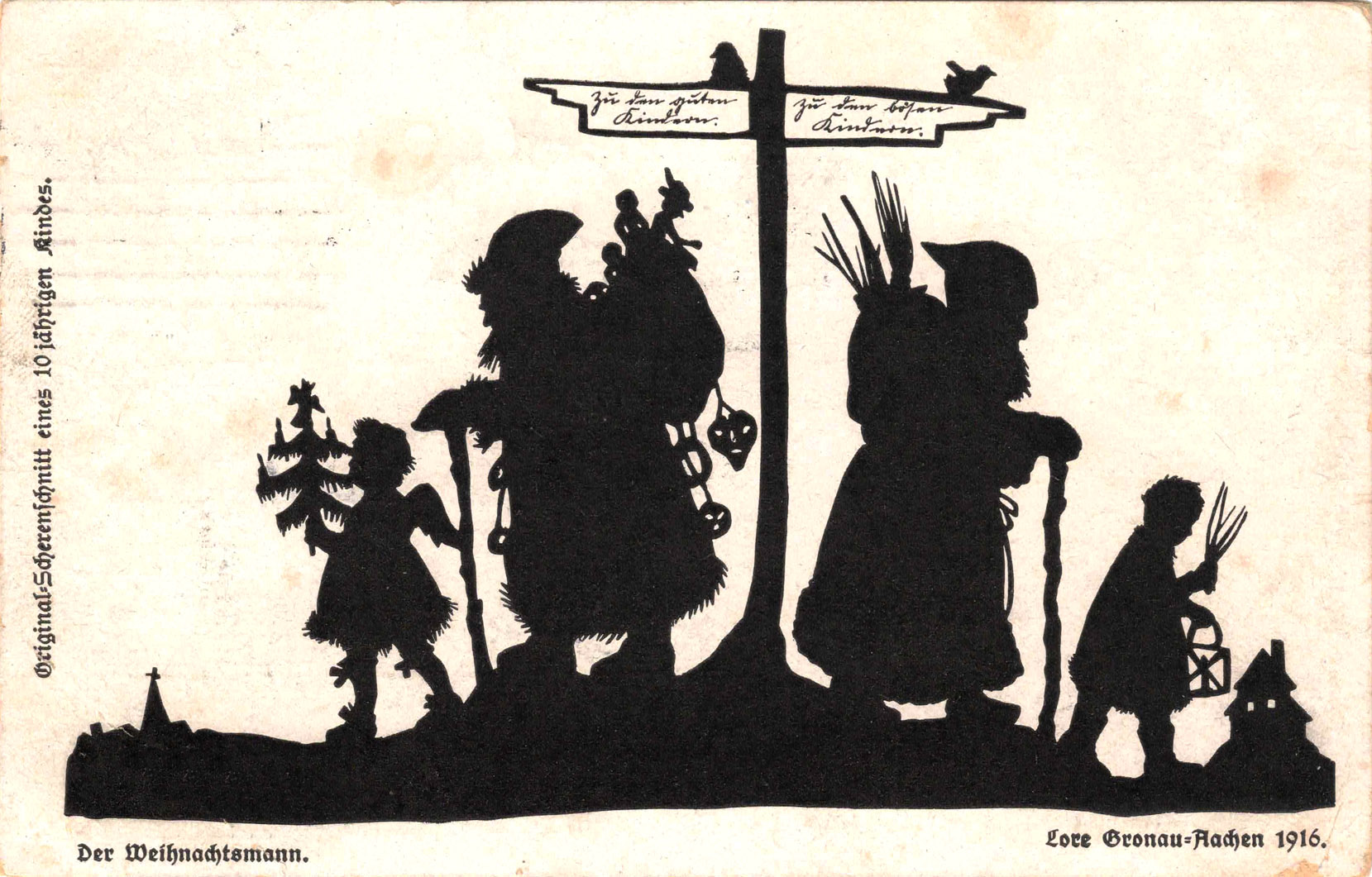 Datei:Postkarte Scherenschnitt LoreGronau Weihnachtsmann 1916.jpg