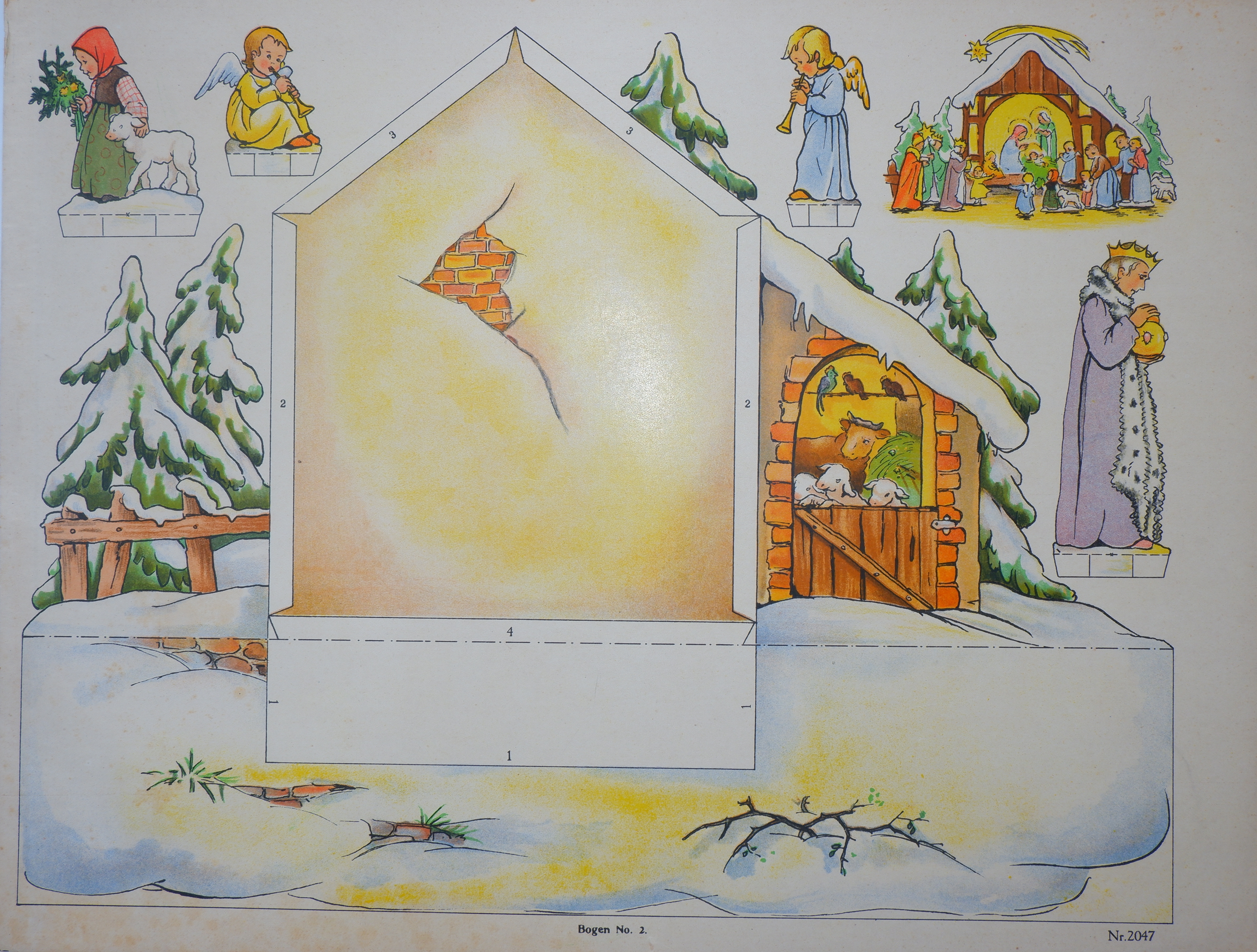 Weihnachts-Bastelbogen Krippenfiguren, Teil 2 von signiert mit Lore Friedrich-Gronau, Jos. Scholz Verlag, Nummer 1047