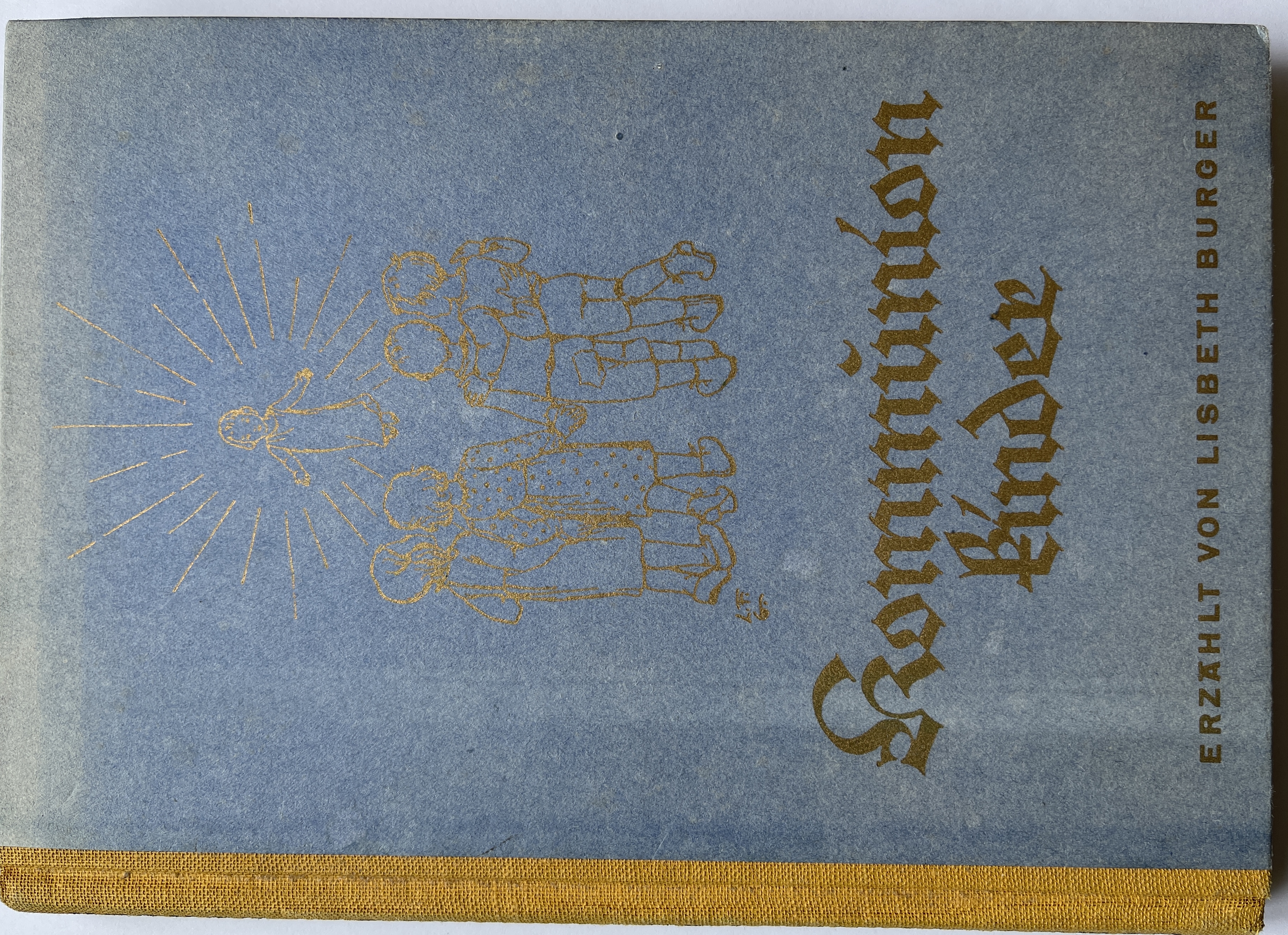 Kommunionkinder Ein Büchlein von zwei Buben und zwei Mädchen, die dem Heiland entgegengingen von Lisbeth Burger (aka Christina Strassner) mit 25 Textillustrationen von Lore Friedrich-Gronau und 4 Vierfarben-Einschaltbildern, 107 Seiten, Halbleinenband, 2,85 RM,| L. Schwann Verlag, Düsseldorf 1934, Foto Copyright Rensmann