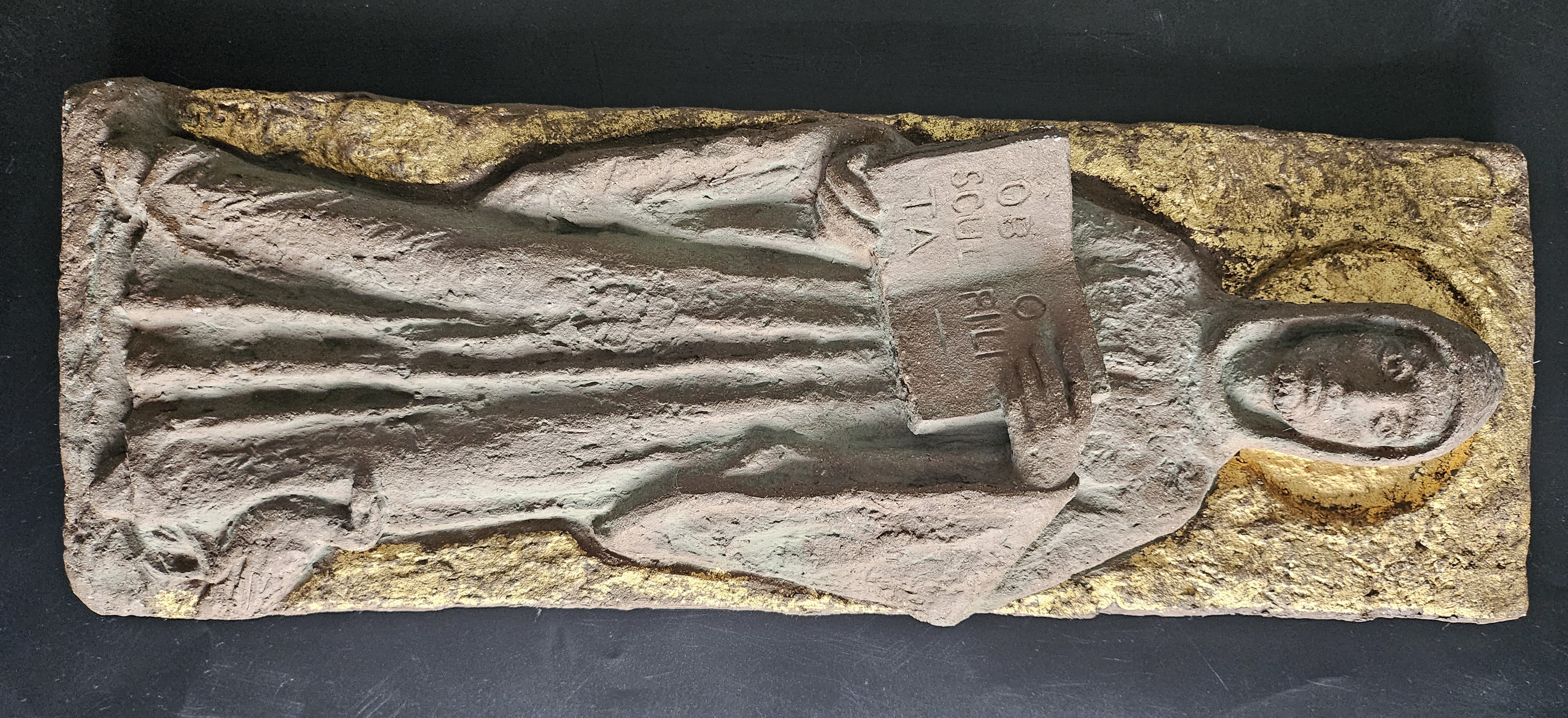 Relief, Majolika mit Gold, Abtei Münsterschwarzach, Lore Friedrich-Gronau