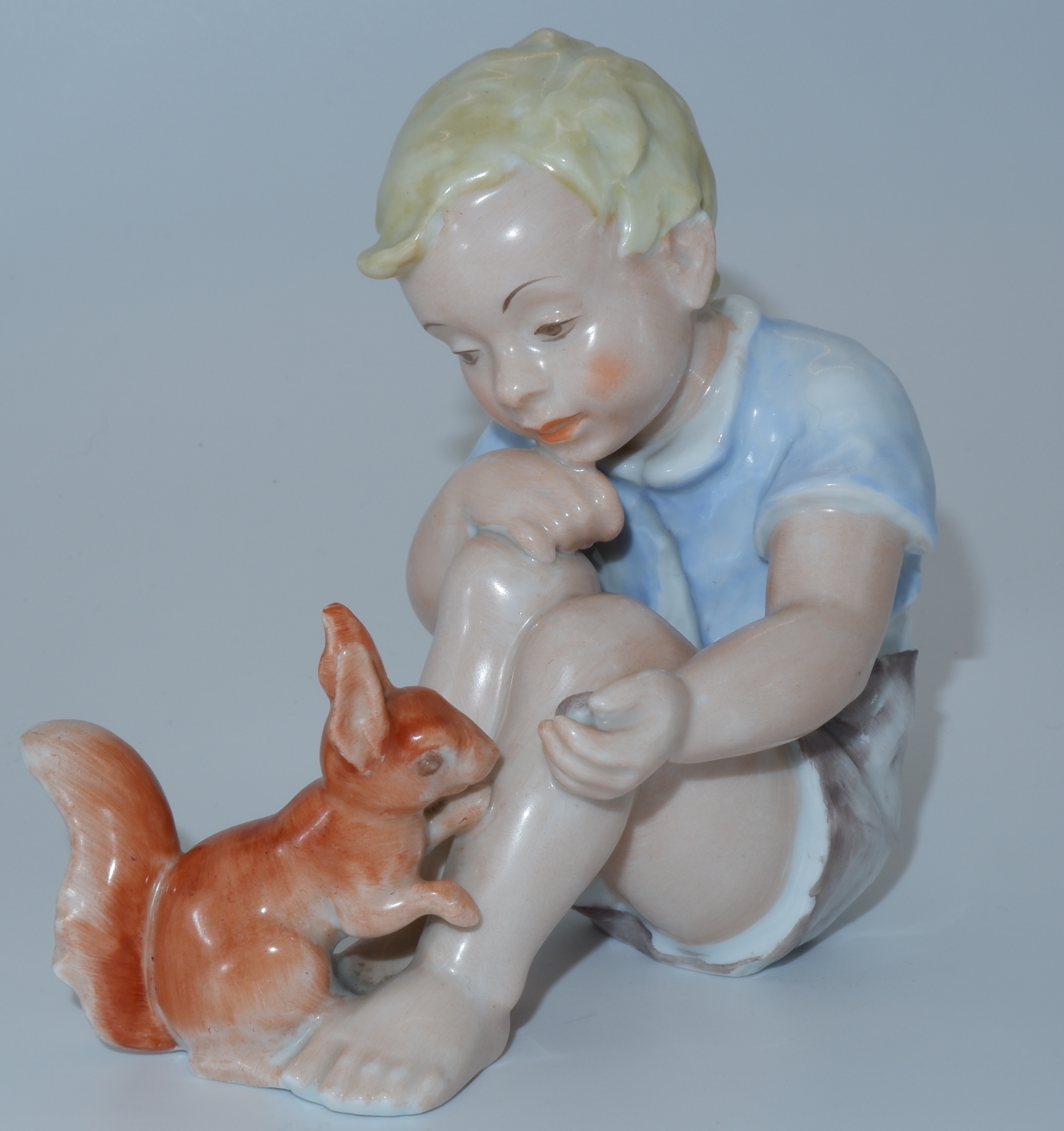 Rosenthal, Junge füttert Eichhörnchen, Lore Friedrich-Gronau, Entwurfsjahr 1937, Nummer 1663, sanfte Bemalung, blaues Shirt, helle Hautfarbe, Foto Copyright: Rensmann