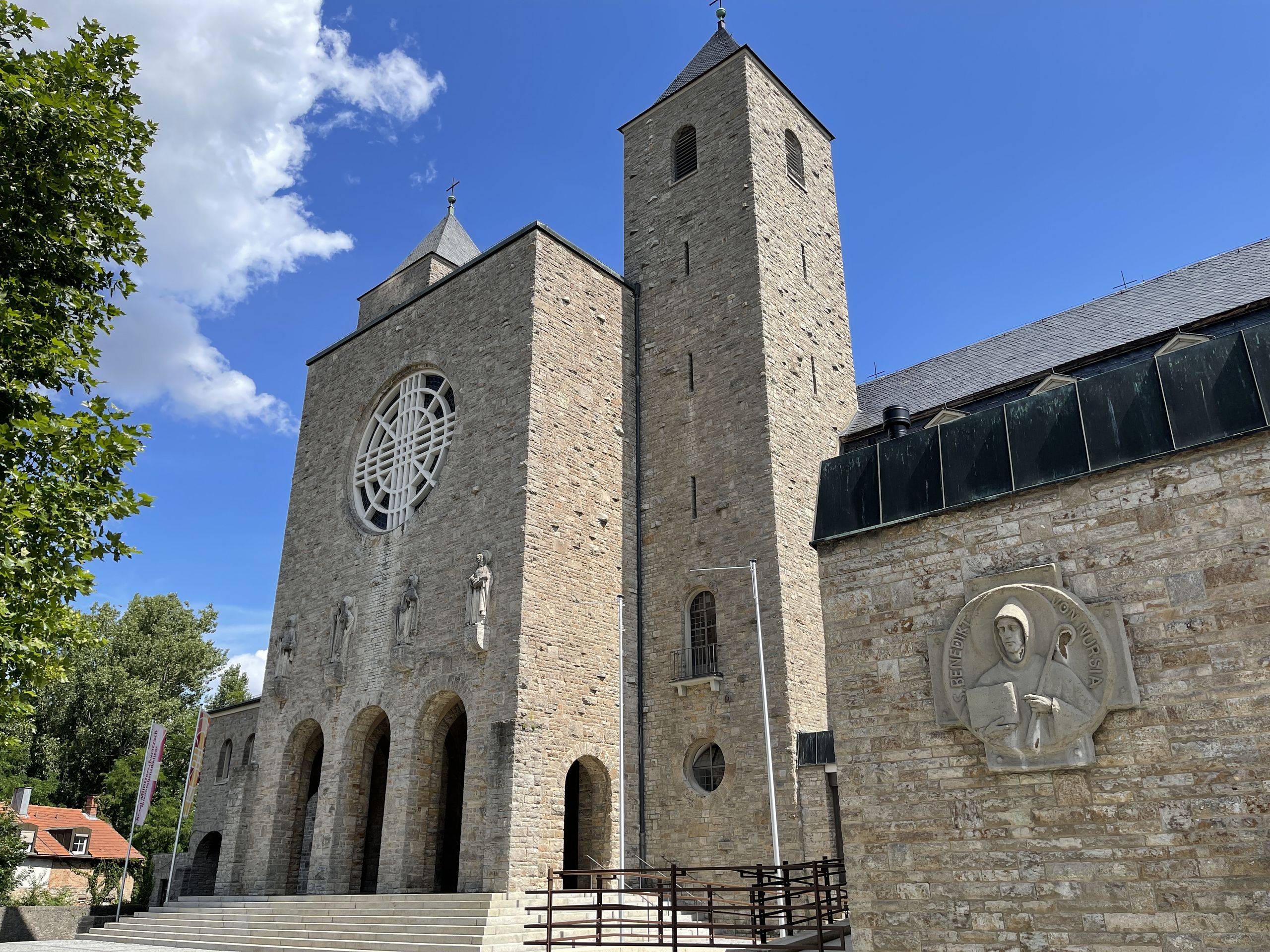 St. Benedikt - Tondo "Der heilige Benedikt in Nursia", Abtei Münsterschwarzach, Außenwand Pforte