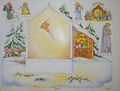 Aufstellkrippe / Oblate Karton, Weihnachtsmotiv, Maria, Krippe, mit Engeln (Motiv auch als Postkarte vorhanden), 12,5x10,5cm