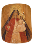 gemalt auf Holz, blattvergoldet Goldfolie Br. Adelmar Dölger, signiert mit L.F.G. |